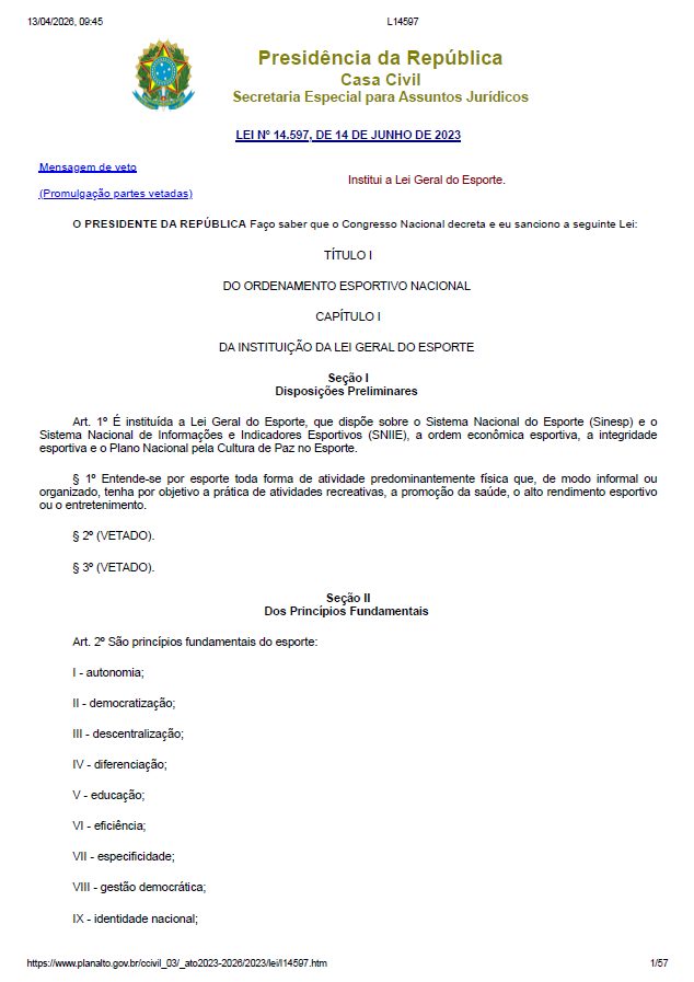 Documento: Lei Geral do Esporte (Lei 14.597/23)