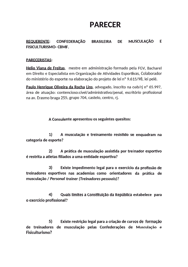 Importância: O parecer deixa claro a possibilidade e a legalidade do curso ofertado pela CBMF e esclarece outros pontos importantes sobre a atuação do profissional, além de trazer um rico recorte temporal com a evolução do esporte no Brasil.