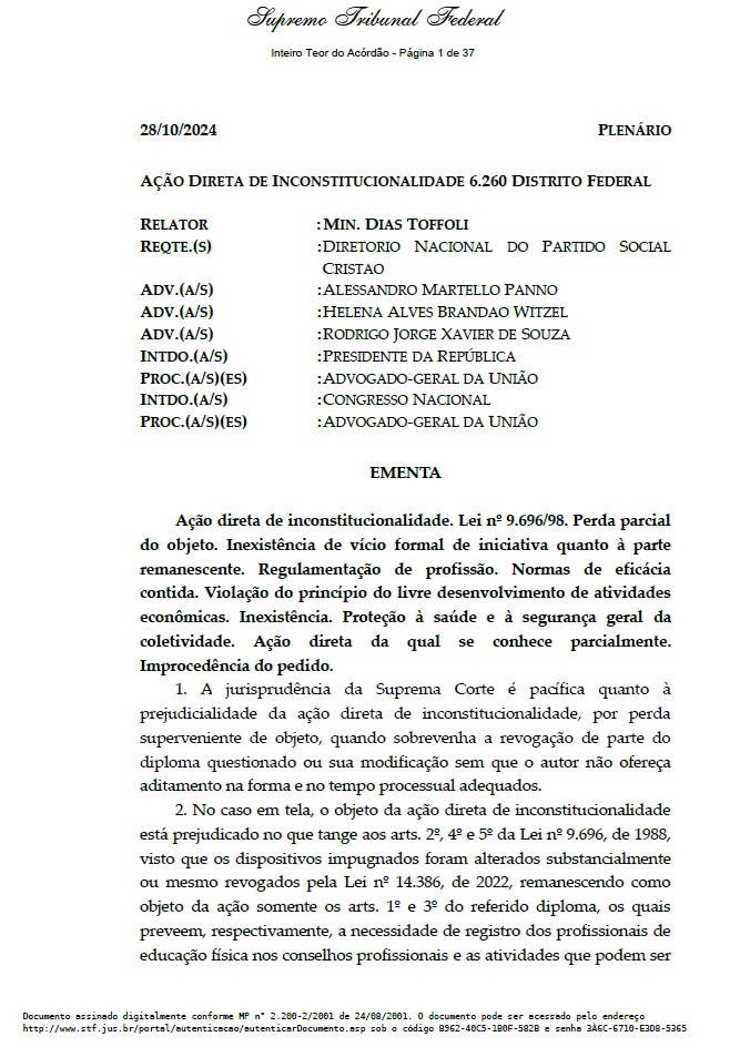 Importância: É a corte suprema do Brasil informando que oficialmente revisou a Lei do CREF e não encontrou nenhuma indicação de exclusividade ou de formação de reserva de mercado, ou seja, a exclusividade que o CREF alega ter não vem de lei, portanto, não existe.