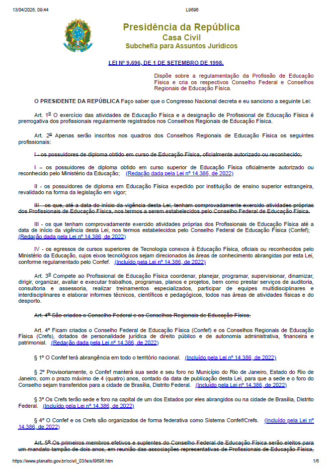 Documento: Lei do CREF (Lei 9696/98)