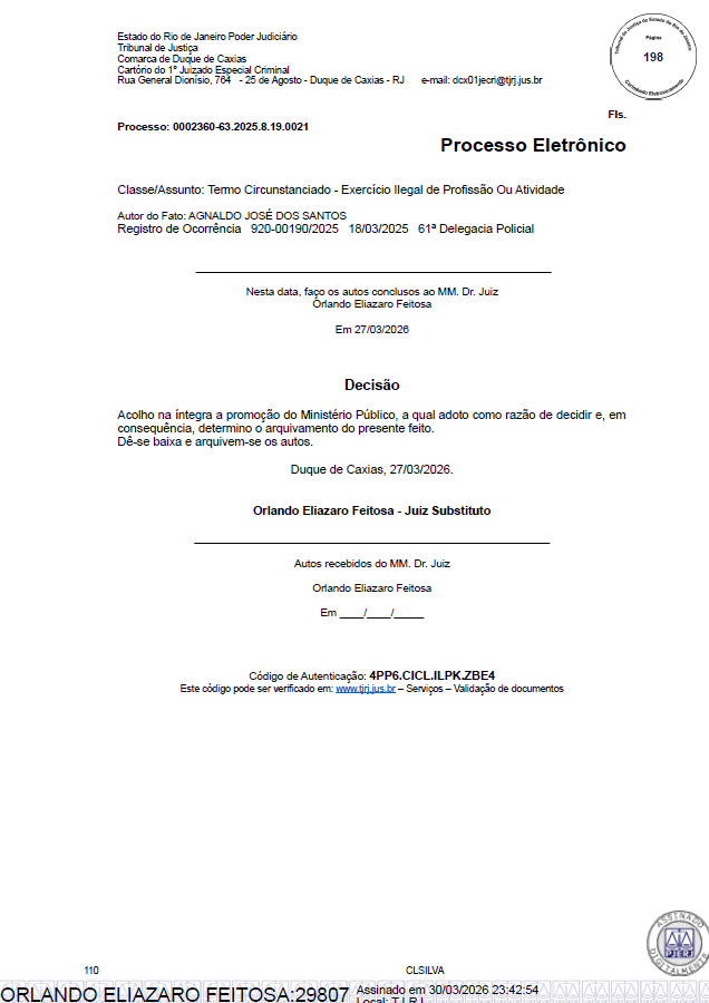Documento: Manifestação do Ministério Público e decisão de arquivamento do processo.